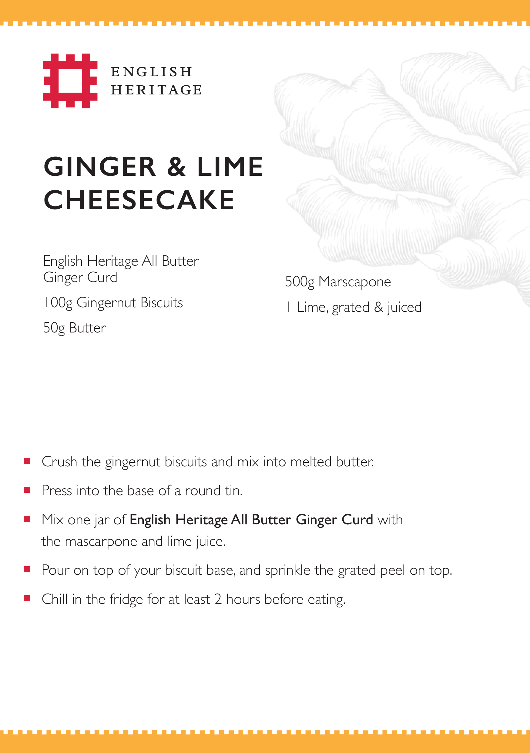 See our English Heritage Recipe for Ginger & Lime Cheesecake to see how we have incorporated this delicious curd. Click Here.